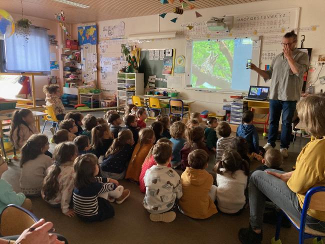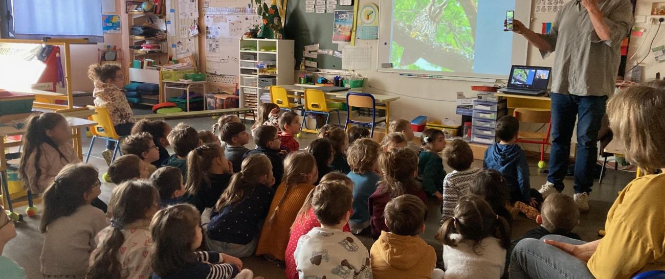 Les maternelles ont appris une multitude de choses sur les animaux qui vivent autour de Bozouls avec Nicolas Cayssiols. Il leur a montré beaucoup de photos et fait écouter les cris des animaux. Un très beau moment.